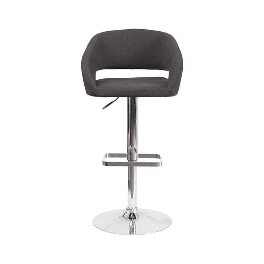 Contemporary Charcoal Fabric Adjustable Height Barstool with Curved Back and Chrome Base