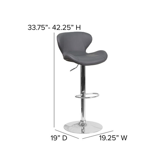 Contemporary Gray Vinyl Adjustable Height Barstool with Curved Back and Chrome Base