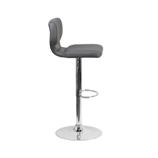 Contemporary Gray Vinyl Adjustable Height Barstool with Vertical Stitch Back and Chrome Base