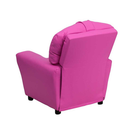 Contemporary Hot Pink Vinyl Kids Recliner with Cup Holder