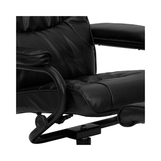 Contemporary Multi-Position Recliner and Ottoman with Wrapped Base in Black LeatherSoft