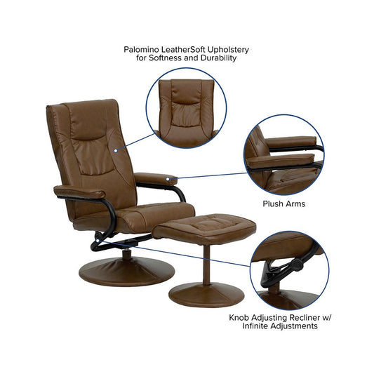 Contemporary Multi-Position Recliner and Ottoman with Wrapped Base in Palimino LeatherSoft