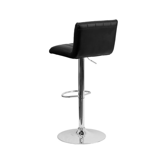Contemporary Black Vinyl Adjustable Height Barstool with Vertical Stitch Back/Seat and Chrome Base