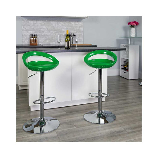 Contemporary Green Plastic Adjustable Height Barstool with Rounded Cutout Back and Chrome Base