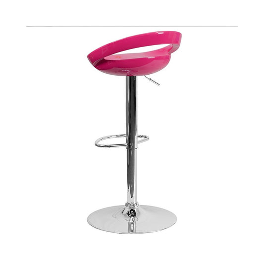 Contemporary Pink Plastic Adjustable Height Barstool with Rounded Cutout Back and Chrome Base