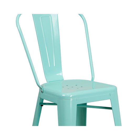Commercial Grade 24" High Mint Green Metal Indoor-Outdoor Counter Height Stool with Back