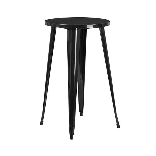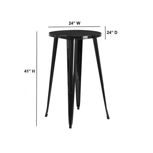 Commercial Grade 24" Round Black Metal Indoor-Outdoor Bar Height Table