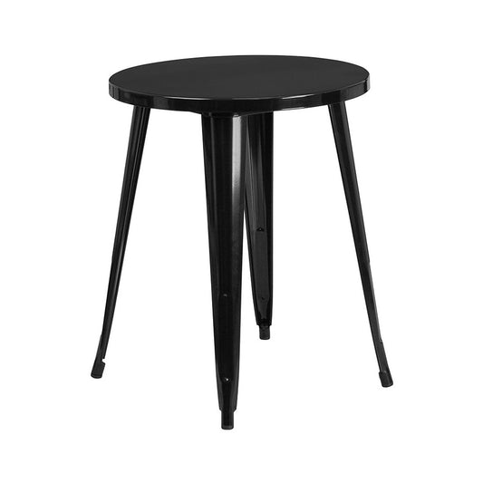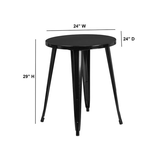 Commercial Grade 24" Round Black Metal Indoor-Outdoor Table