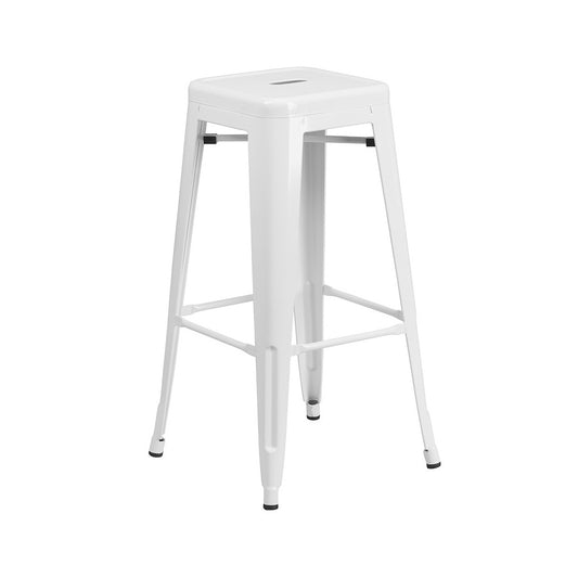 Commercial Grade 30" High Backless Distressed Silver Gray Metal Indoor-Outdoor Barstool