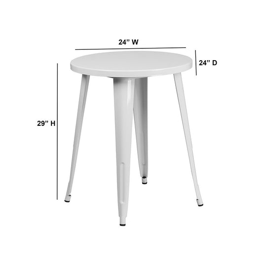 Commercial Grade 24" Round White Metal Indoor-Outdoor Table
