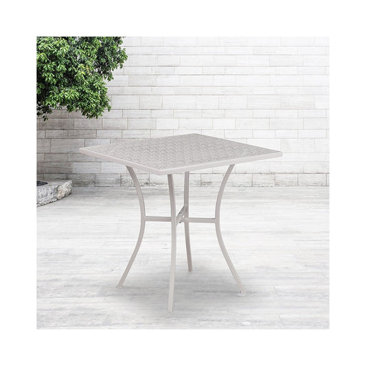 Commercial Grade 28" Square Light Gray Indoor-Outdoor Steel Patio Table