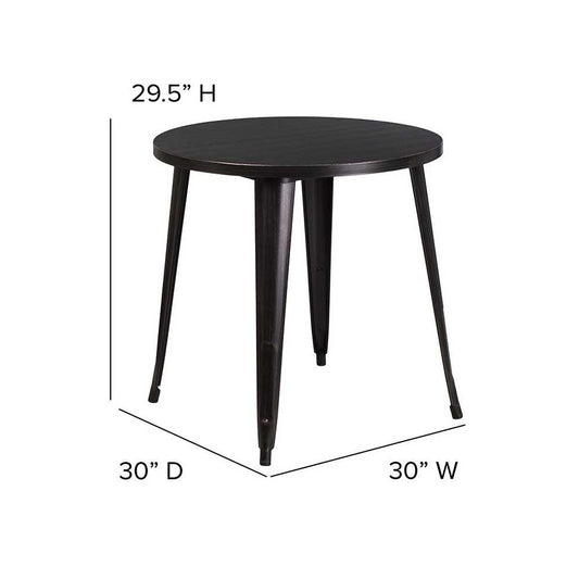 Commercial Grade 30" Round Black-Antique Gold Metal Indoor-Outdoor Table