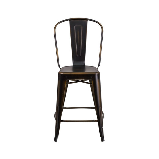 Commercial Grade 24" High Distressed Copper Metal Indoor-Outdoor Counter Height Stool with Back