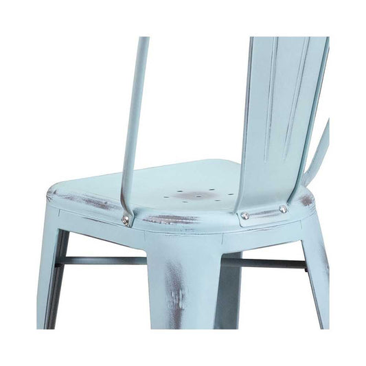 Commercial Grade 24" High Distressed Green-Blue Metal Indoor-Outdoor Counter Height Stool with Back