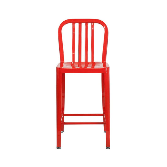 Commercial Grade 24" High Red Metal Indoor-Outdoor Counter Height Stool with Vertical Slat Back