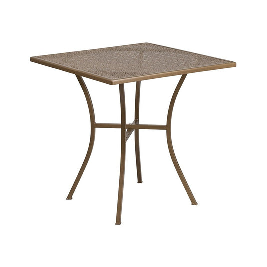 Commercial Grade 28" Square Gold Indoor-Outdoor Steel Patio Table Set with 2 Round Back Chairs