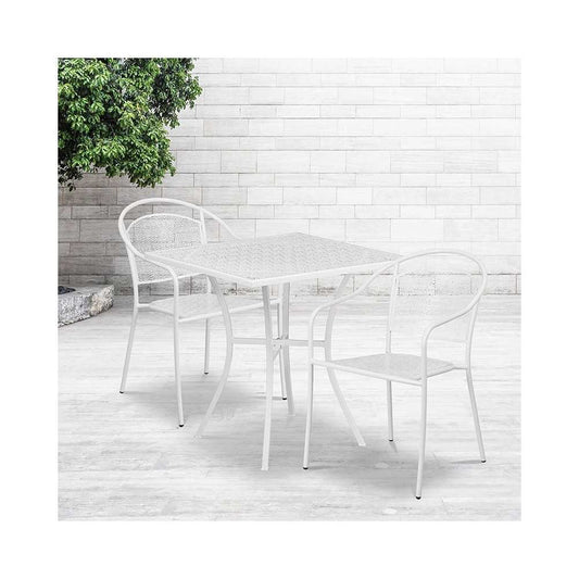 Commercial Grade 28" Square White Indoor-Outdoor Steel Patio Table Set with 2 Round Back Chairs