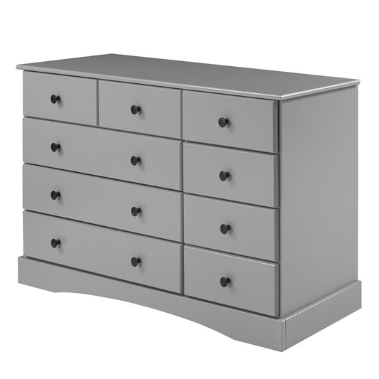 Classic 9 Drawer Solid Wood Top Dresser with Metal Hardware - Gray