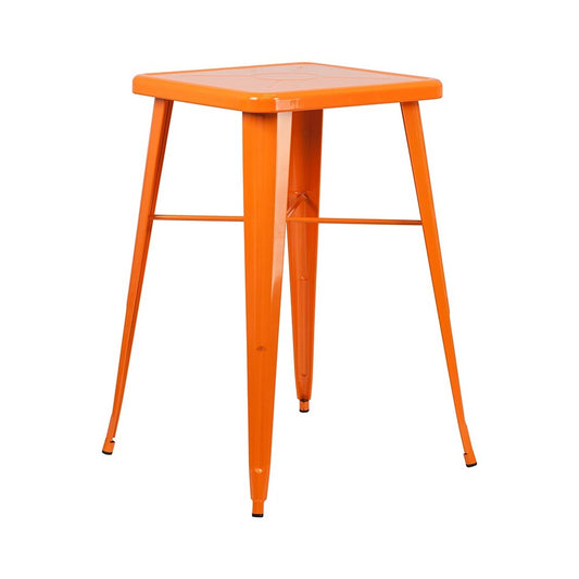 Commercial Grade 23.75" Square Orange Metal Indoor-Outdoor Bar Table Set with 2 Square Seat Backless Stools