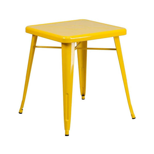 Commercial Grade 23.75" Square Yellow Metal Indoor-Outdoor Table Set with 2 Stack Chairs