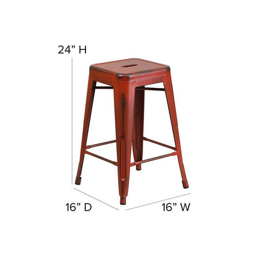 Commercial Grade 24" High Backless Distressed Kelly Red Metal Indoor-Outdoor Counter Height Stool