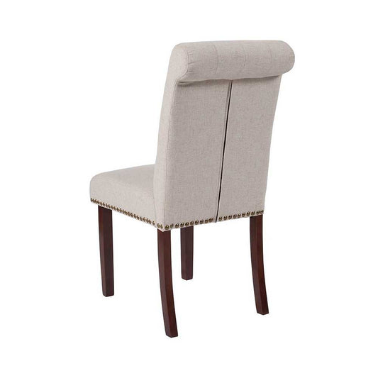 Beige Fabric Parsons Chair with Rolled Back, Accent Nail Trim and Walnut Finish