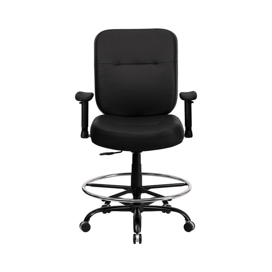 Big & Tall 400 lb. Rated Black LeatherSoft Ergonomic Drafting Chair with Adjustable Arms