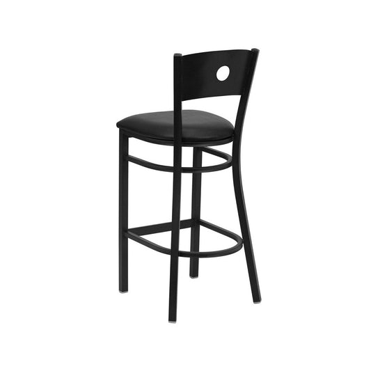 Black Circle Back Metal Restaurant Barstool - Black Vinyl Seat