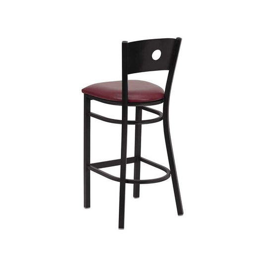 Black Circle Back Metal Restaurant Barstool - Burgundy Vinyl Seat