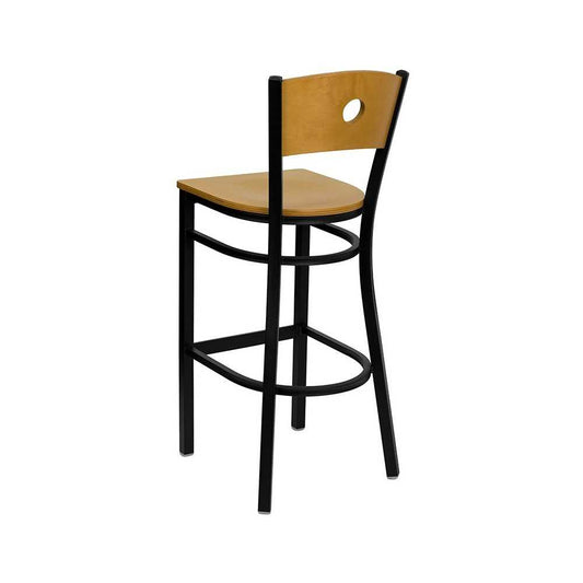 Black Circle Back Metal Restaurant Barstool - Natural Wood Back & Seat