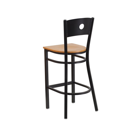 Black Circle Back Metal Restaurant Barstool - Natural Wood Seat