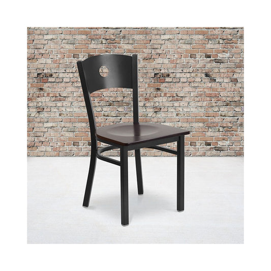 Black Circle Back Metal Restaurant Chair - Walnut Wood Seat