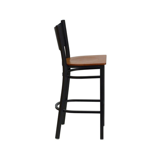 Black Coffee Back Metal Restaurant Barstool - Cherry Wood Seat