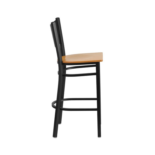 Black Coffee Back Metal Restaurant Barstool - Natural Wood Seat