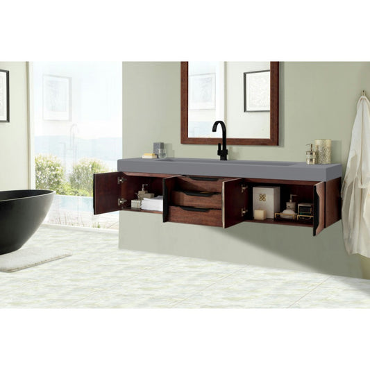 Mercer Island 72" Single Vanity, Coffee Oak w/ Dusk Gray Glossy Composite Top