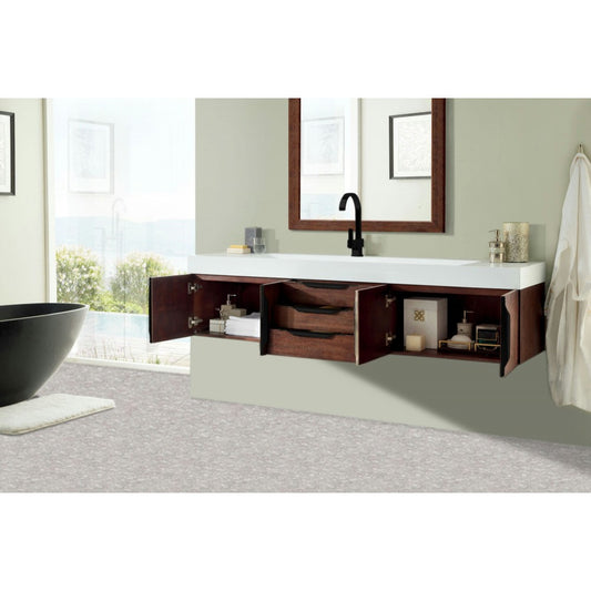 Mercer Island 72" Single Vanity, Coffee Oak w/ Glossy White Composite Top