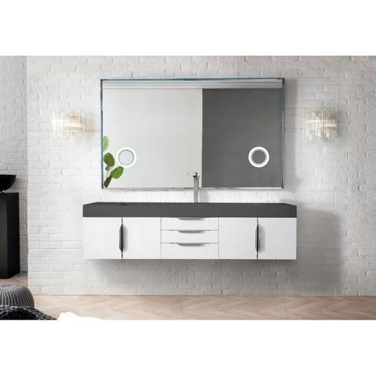 Mercer Island 72" Single Vanity, Glossy White w/ Glossy White Composite Top