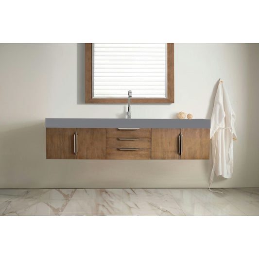 Mercer Island 72" Single Vanity, Latte Oak w/ Dusk Gray Glossy Composite Top