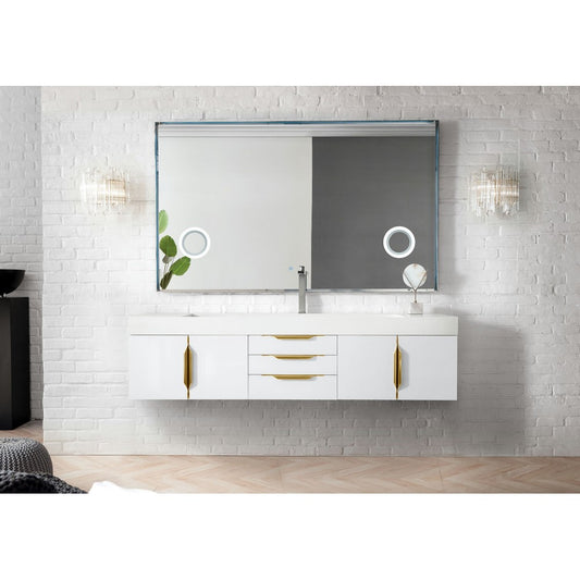 Mercer Island 72" Single Vanity White Radiant Gold w/ White Composite Top