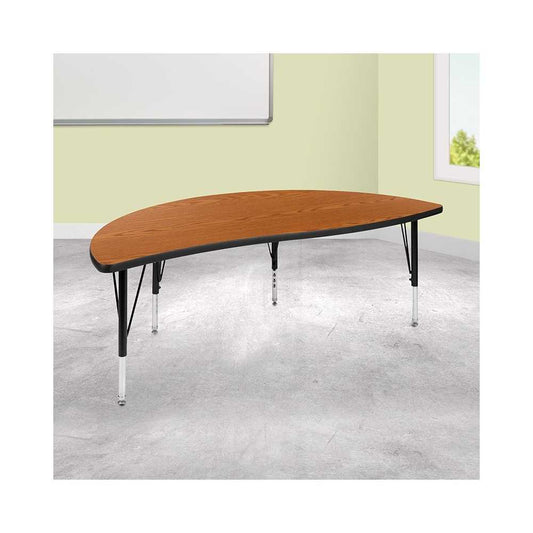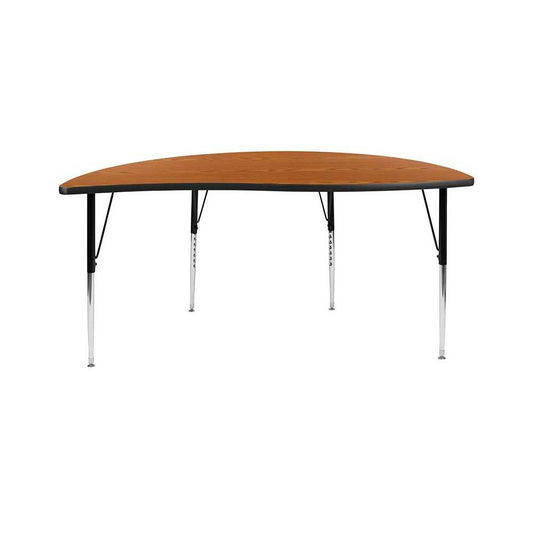 60" Half Circle Wave Collaborative Oak Thermal Laminate Activity Table - Standard Height Adjustable Legs
