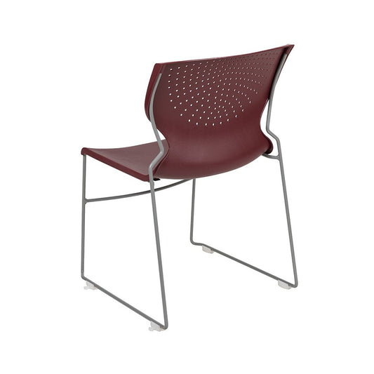 661 lb. Capacity Burgundy Full Back Stack Chair with Gray Powder Coated Frame