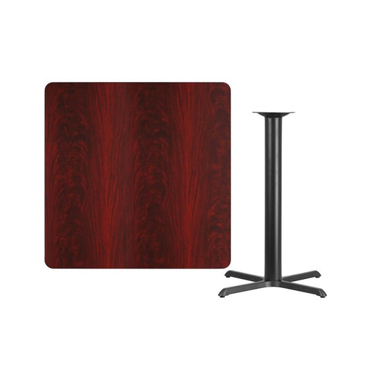 42'' Square Mahogany Laminate Table Top with 33'' x 33'' Bar Height Table Base