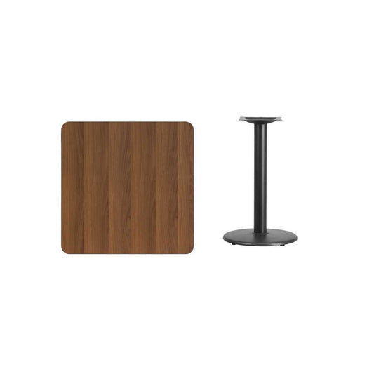 30'' Square Walnut Laminate Table Top with 18'' Round Table Height Base
