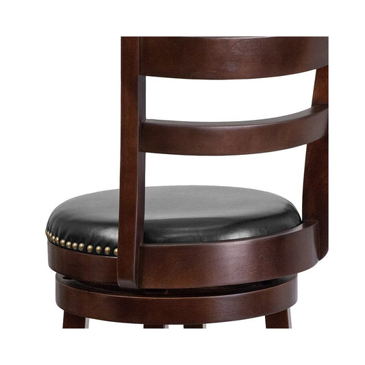 30'' High Cappuccino Wood Barstool with Single Slat Ladder Back and Black LeatherSoft Swivel Seat