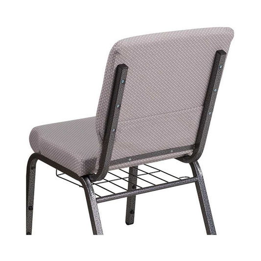 18.5''W Church Chair in Gray Dot Fabric with Book Rack - Silver Vein Frame