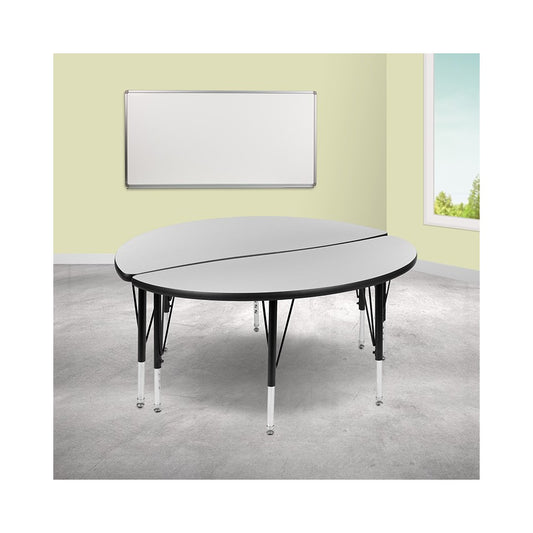 2 Piece 47.5" Circle Wave Collaborative Gray Thermal Laminate Activity Table Set - Height Adjustable Short Legs
