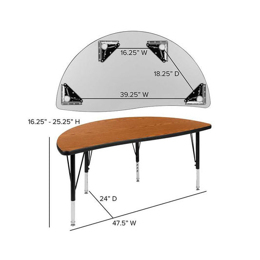 2 Piece 47.5" Circle Wave Collaborative Oak Thermal Laminate Activity Table Set - Height Adjustable Short Legs