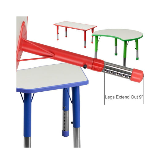 21.875''W x 26.625''L Rectangular Red Plastic Height Adjustable Activity Table with Gray Top