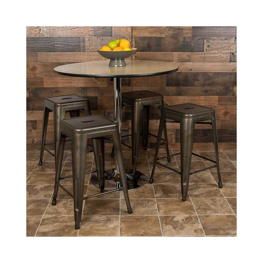 24" High Metal Counter-Height, Indoor Bar Stool in Gun Metal Gray - Stackable Set of 4