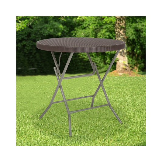 2.6-Foot Round Brown Rattan Plastic Folding Table